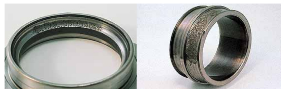 合面過盈量不足的情況下,由于滑動而使載荷點向周圍方向移動,產生套圈相對軸或外 殼向圓周方向位置偏離的現象。蠕變一旦產生,配合面顯著磨損,磨損粉末有可能進入 軸承內部,形成異常磨損、滾道剝落并保持架磨損及附加載荷的過程,以至可能造成保 持架斷裂。