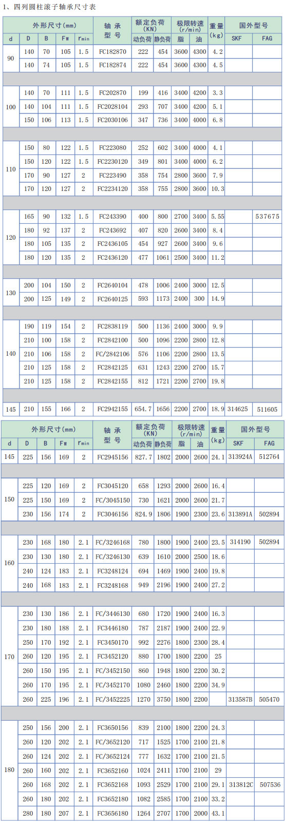 a、軸承在有限的安裝空間內,具有***大額定動載荷值,并可用于高轉速及高精度軋制;